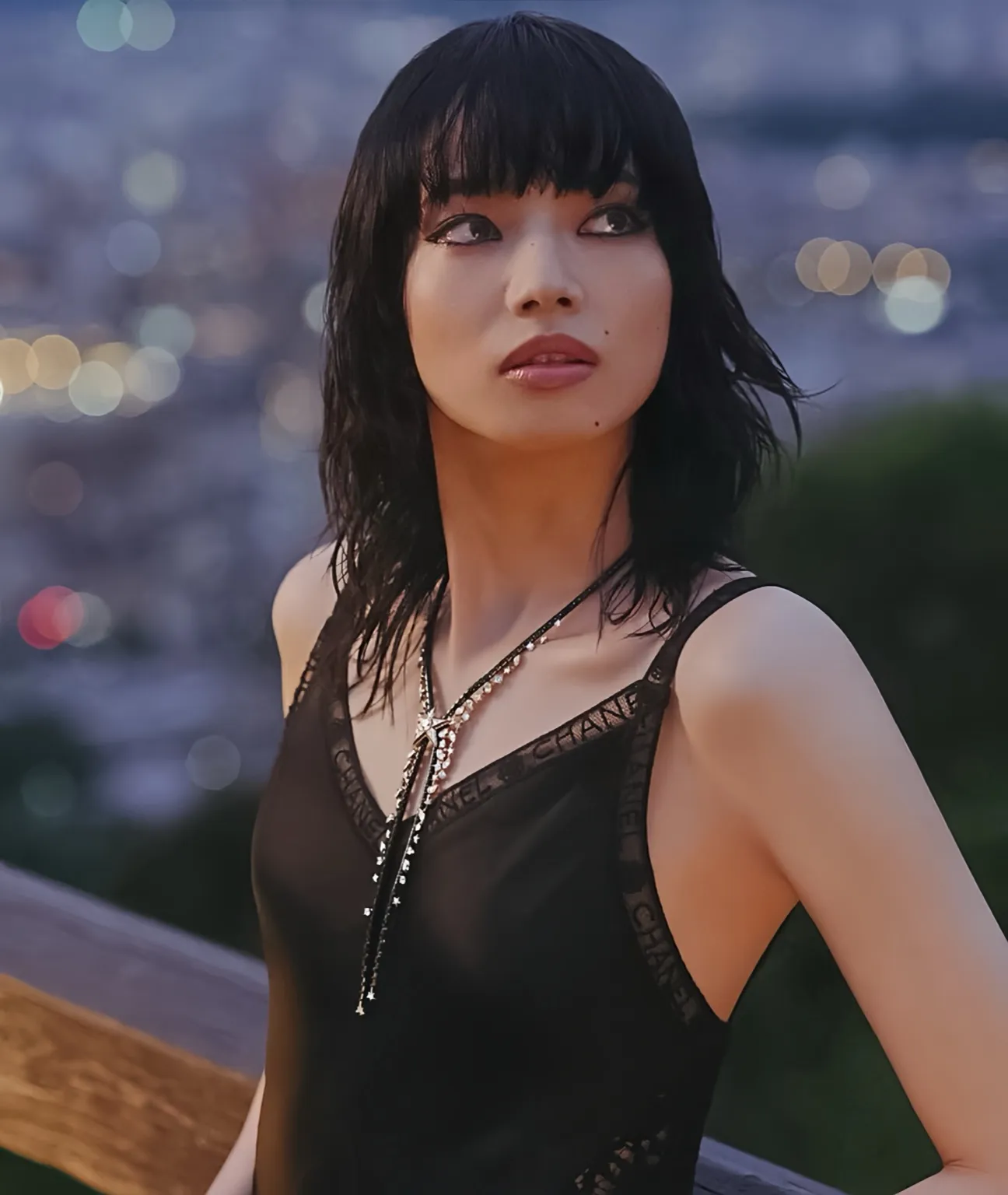 도착지인 교토에서 열린 샤넬 공식 행사에서는 완전히 다른 분위기의 룩을 선보였습니다.